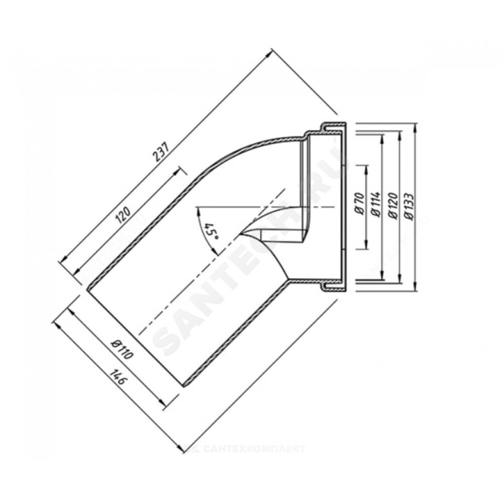 Труба фановая для унитаза 110мм 45гр для пластиковых труб Орио С-492