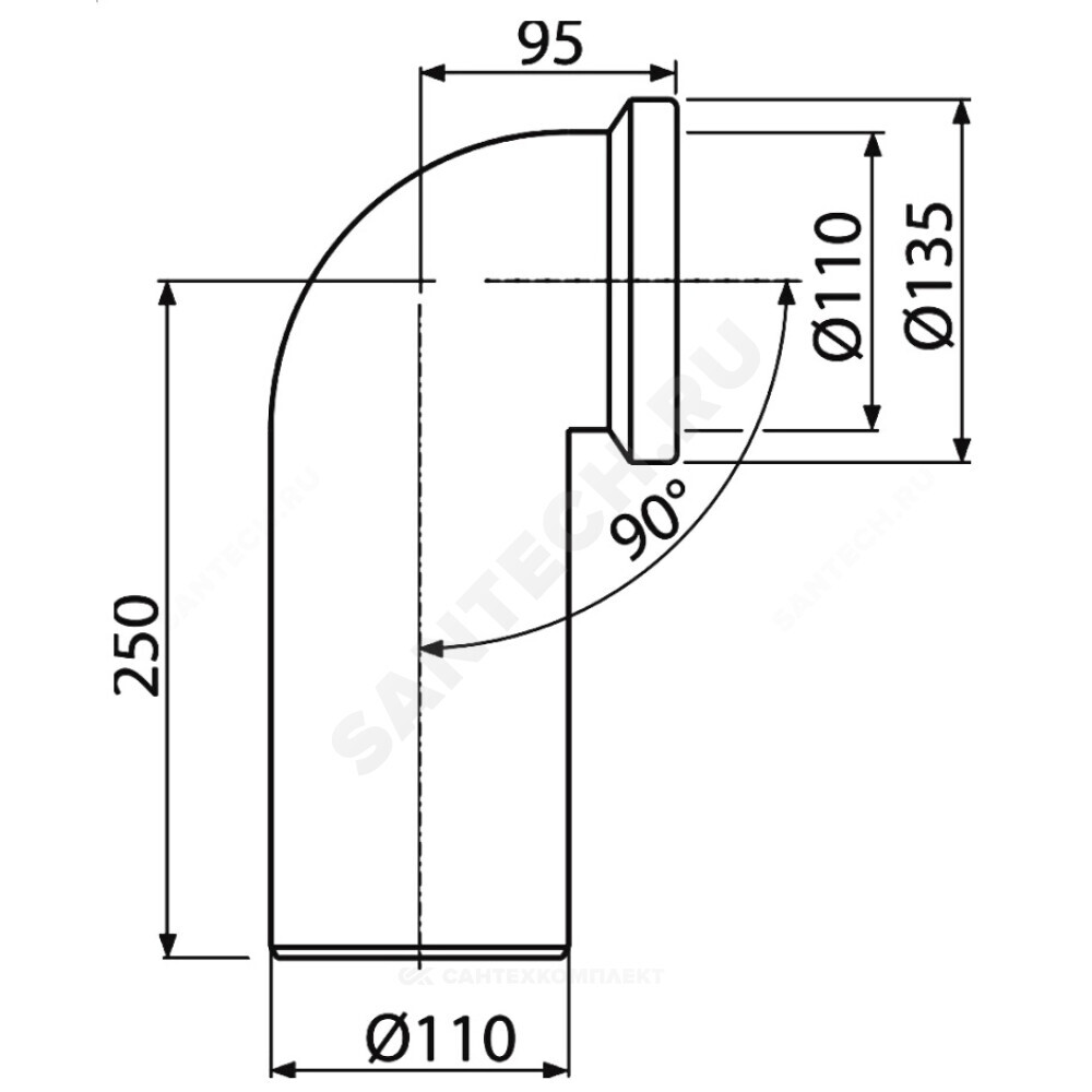 Труба фановая для унитаза 110мм 90гр для пластиковых труб Alca Plast A90-90