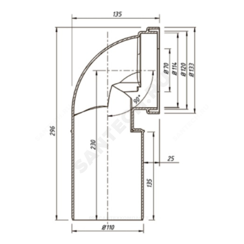 Труба фановая для унитаза 110мм 90гр для пластиковых труб Орио С-491