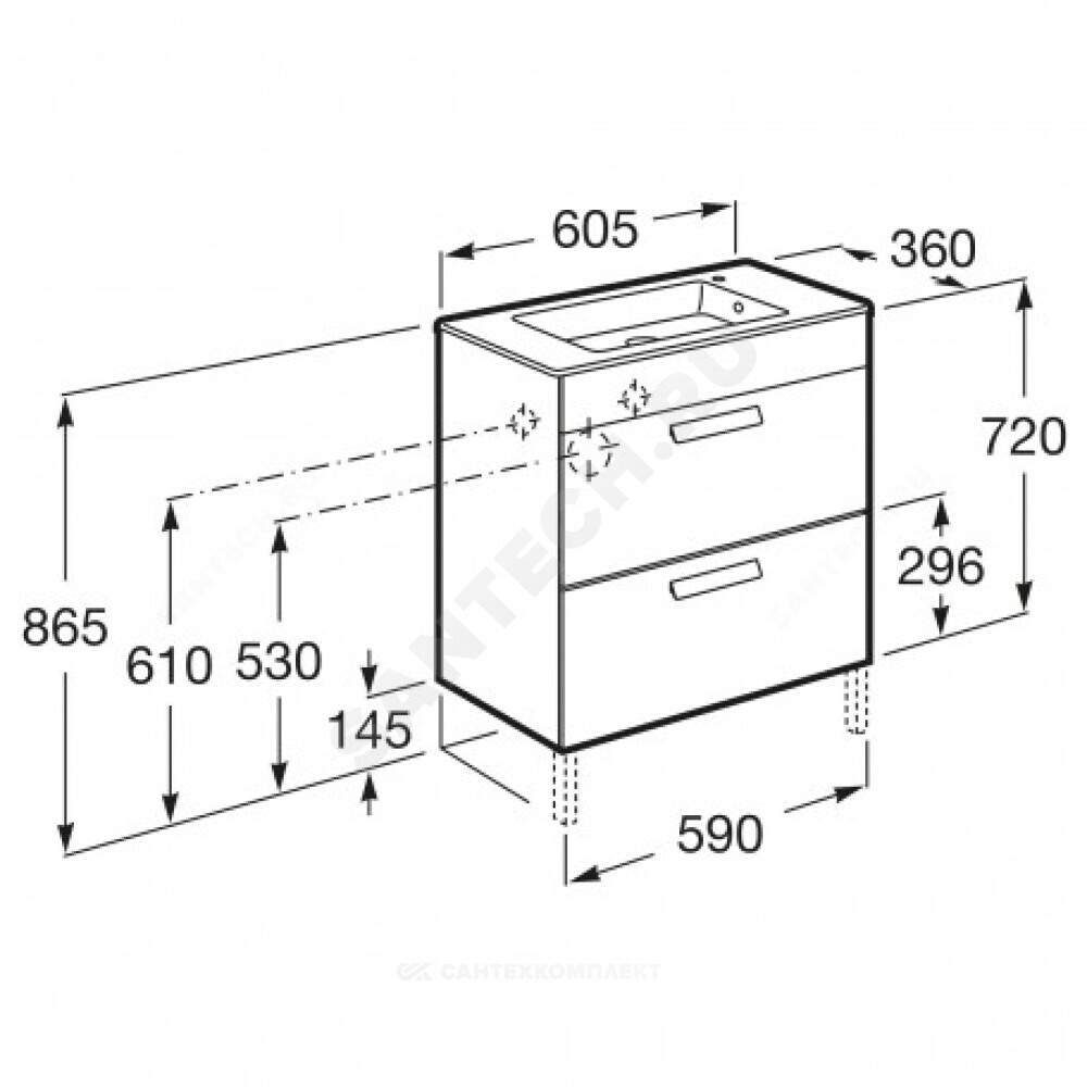 Тумба под раковину Roca Debba 60 2 ящика, белый глянец
