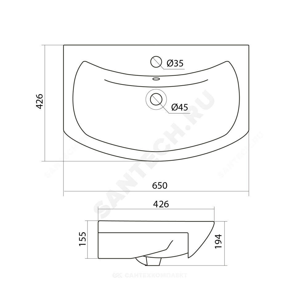 умывальник - 1шт., комплект креплений - 1шт.