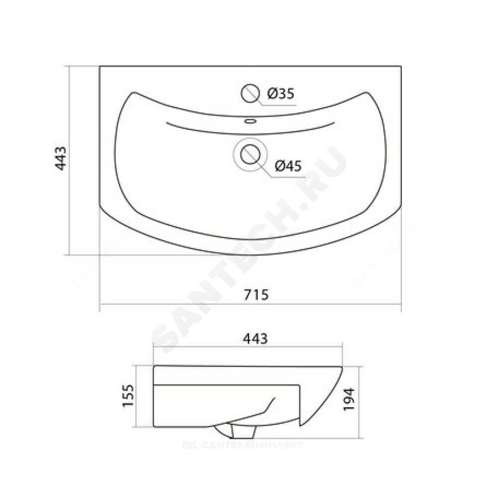 умывальник - 1шт., комплект креплений - 1шт.