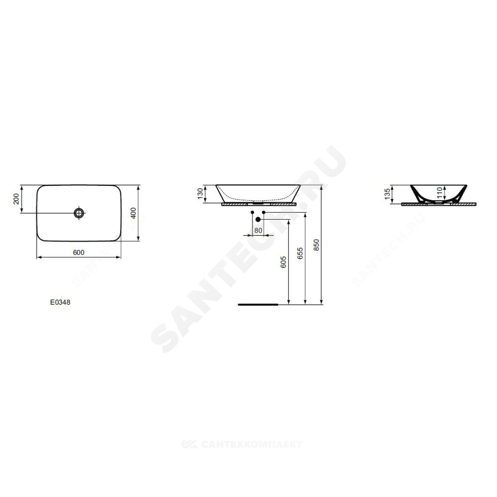 Умывальник - чаша 60х40 см, крепеж D570967