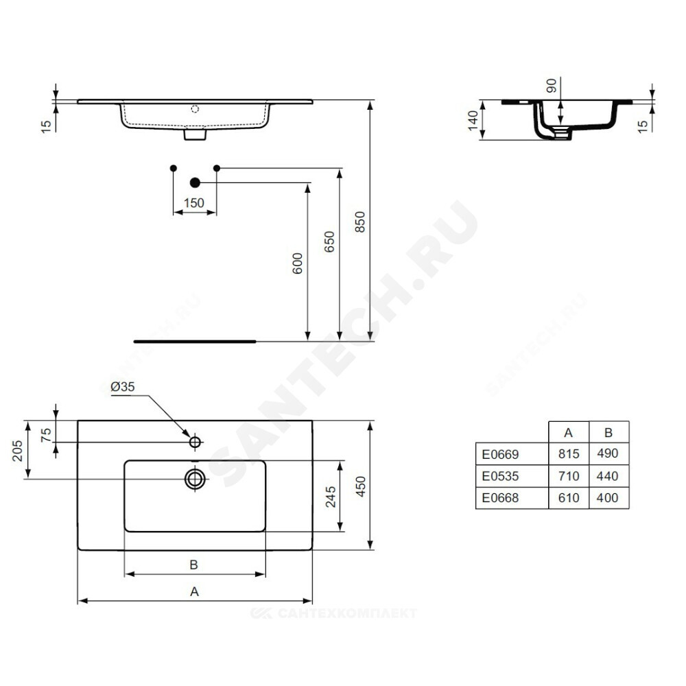 с отверстием перелива, только для встраивания в подстолье (без возможности крепежа к стене). Для монтажа с подстольем Tempo 60 см