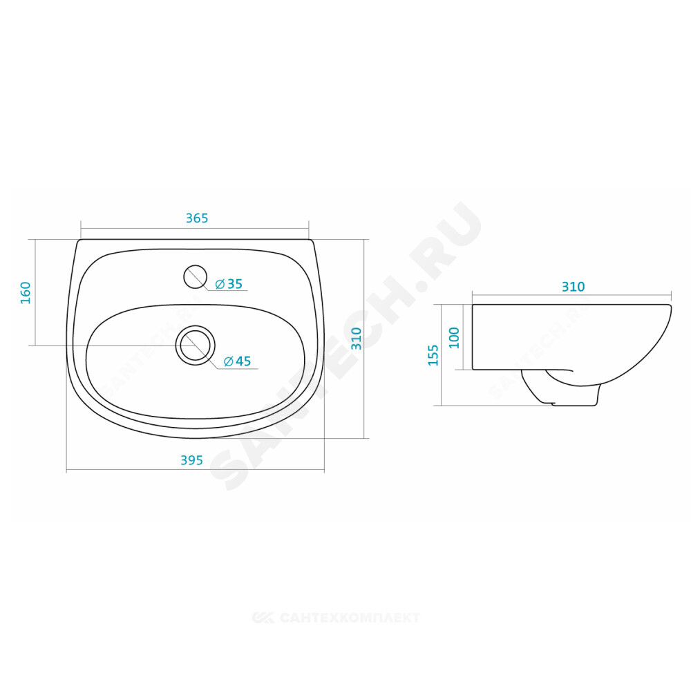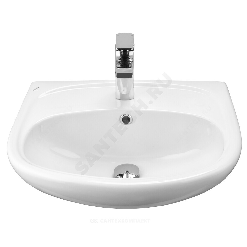 умывальник - 1шт., комплект креплений (Винт-шуруп М10х100 - 2 шт., дюбель универсальный D12х61 - 2 шт., шайба-втулка - 2 шт., шайба - 2 шт., гайка - 2 шт.) - 1шт.