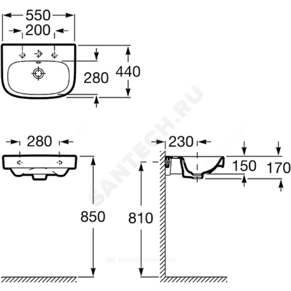 умывальник, комплект крепления