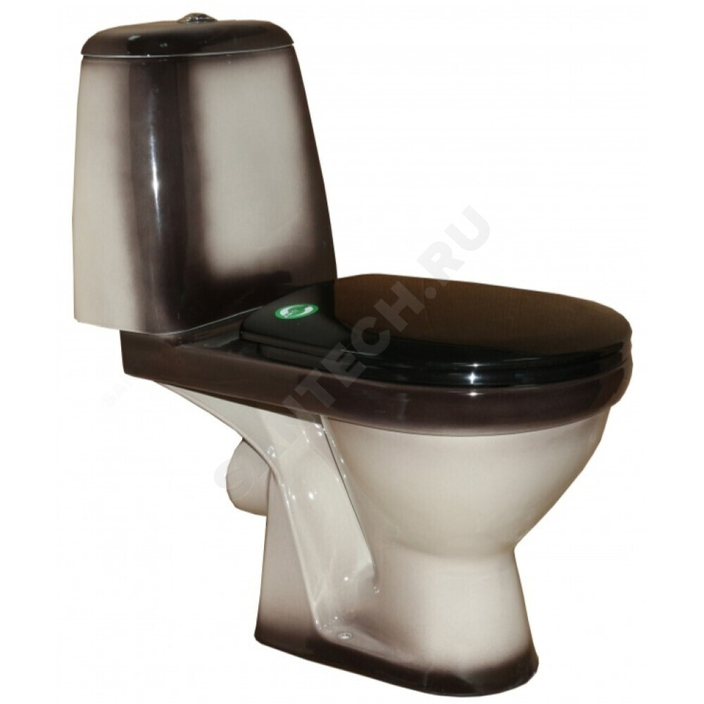 Унитаз-компакт горизонтальный выпуск нижний подвод 2/реж с сиденьем полипропилен черный декор Премьер Rosa (Кировская керамика)