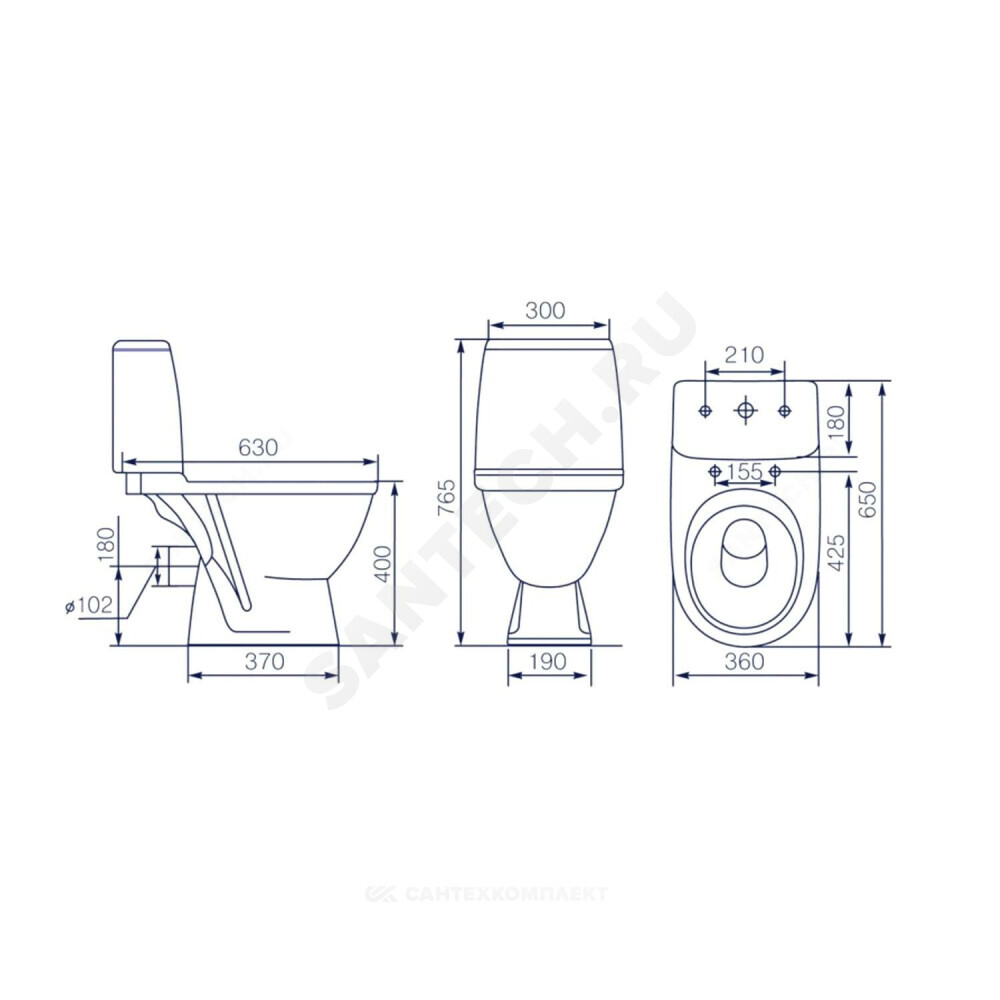 Унитаз-компакт горизонтальный выпуск нижний подвод 2/реж с сиденьем полипропилен коричневый декор Премьер Rosa (Кировская керамика)