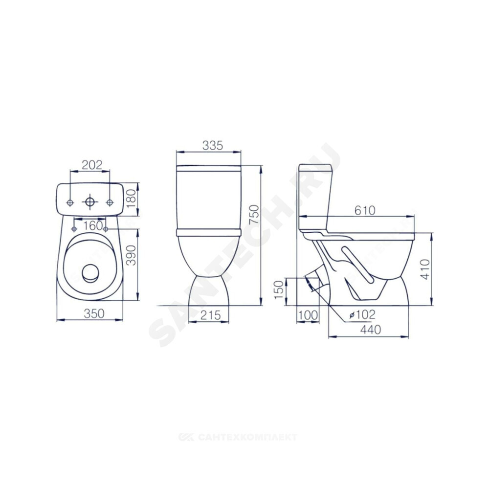 Унитаз-компакт косой выпуск нижний подвод 1/реж с сиденьем микролифт белый Лира Люкс Rosa (Кировская керамика)