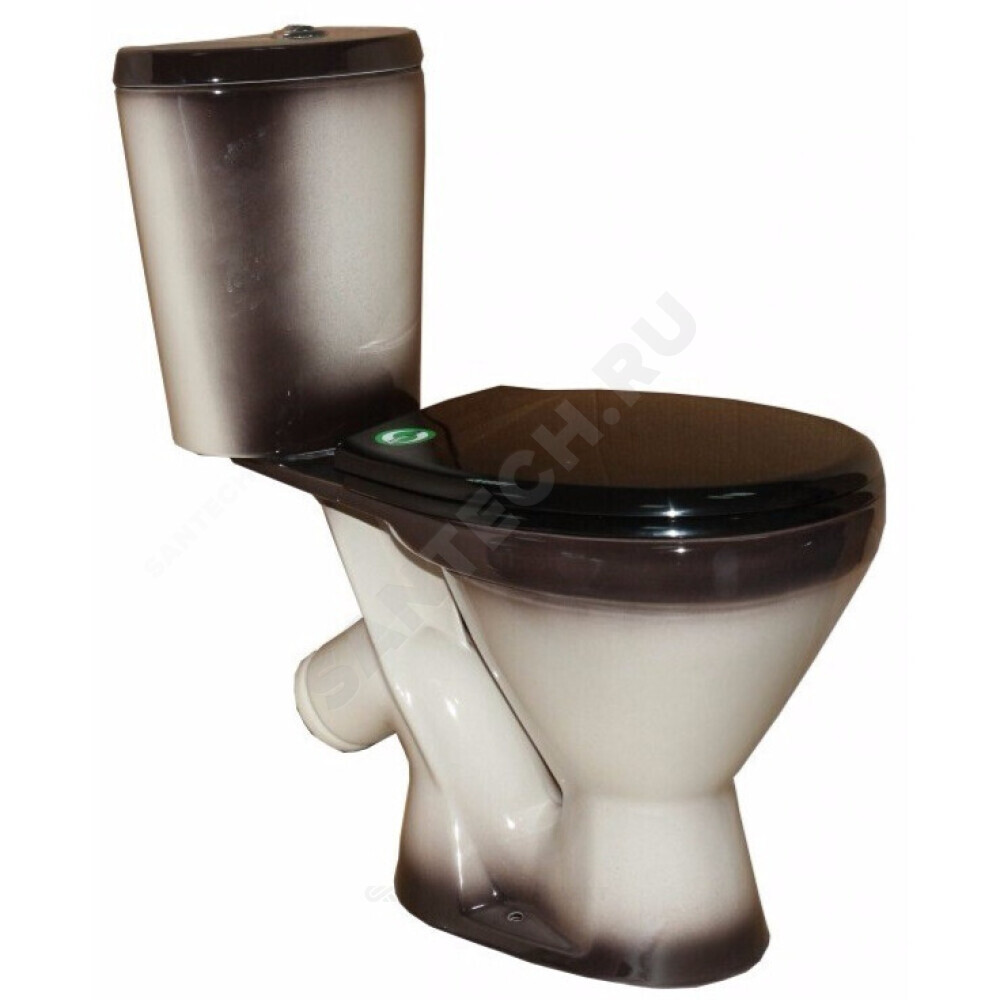 Унитаз-компакт косой выпуск нижний подвод 1/реж с сиденьем полипропилен черный декор Элегант Rosa (Кировская керамика)