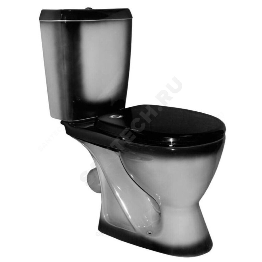 Унитаз-компакт косой выпуск нижний подвод 1/реж с сиденьем полипропилен черный декор Лира Rosa (Кировская керамика)