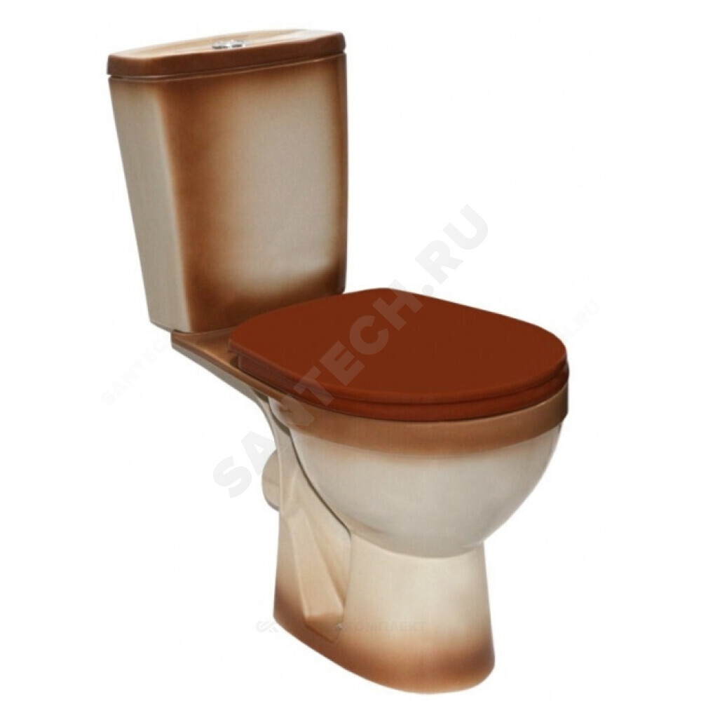 Унитаз-компакт косой выпуск нижний подвод 2/реж с сиденьем коричневый декор Уют Rosa (Кировская керамика)