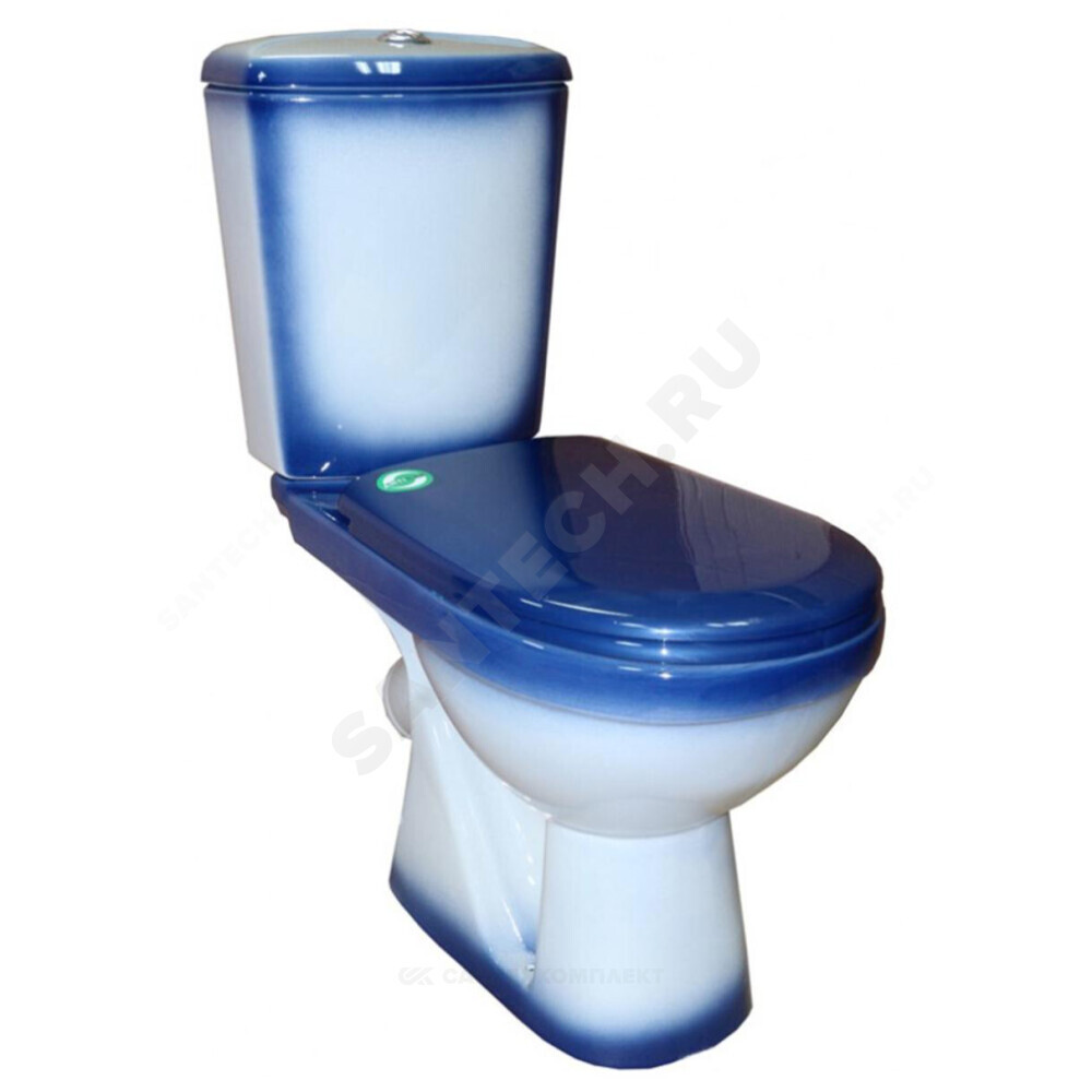 Унитаз-компакт косой выпуск нижний подвод 2/реж с сиденьем полипропилен синий декор Комфорт Rosa (Кировская керамика)