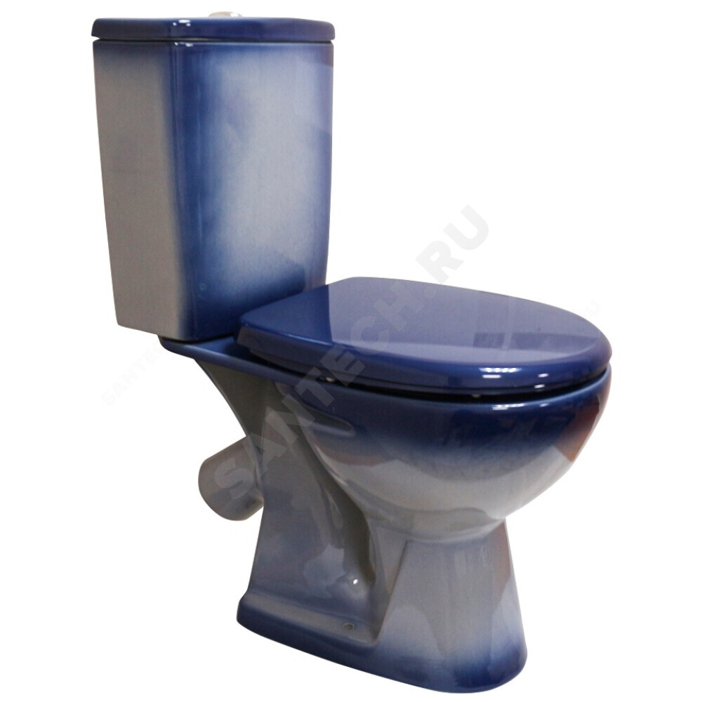 Унитаз-компакт косой выпуск нижний подвод 2/реж с сиденьем синий декор Уют Rosa (Кировская керамика)