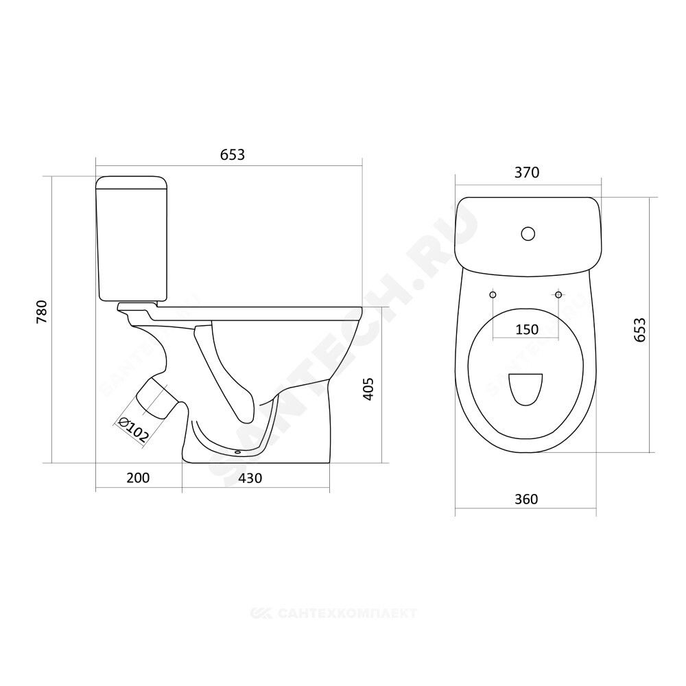 Унитаз-компакт (чаша, бачок, арматура, комплект креплений ), сиденье полипропилен