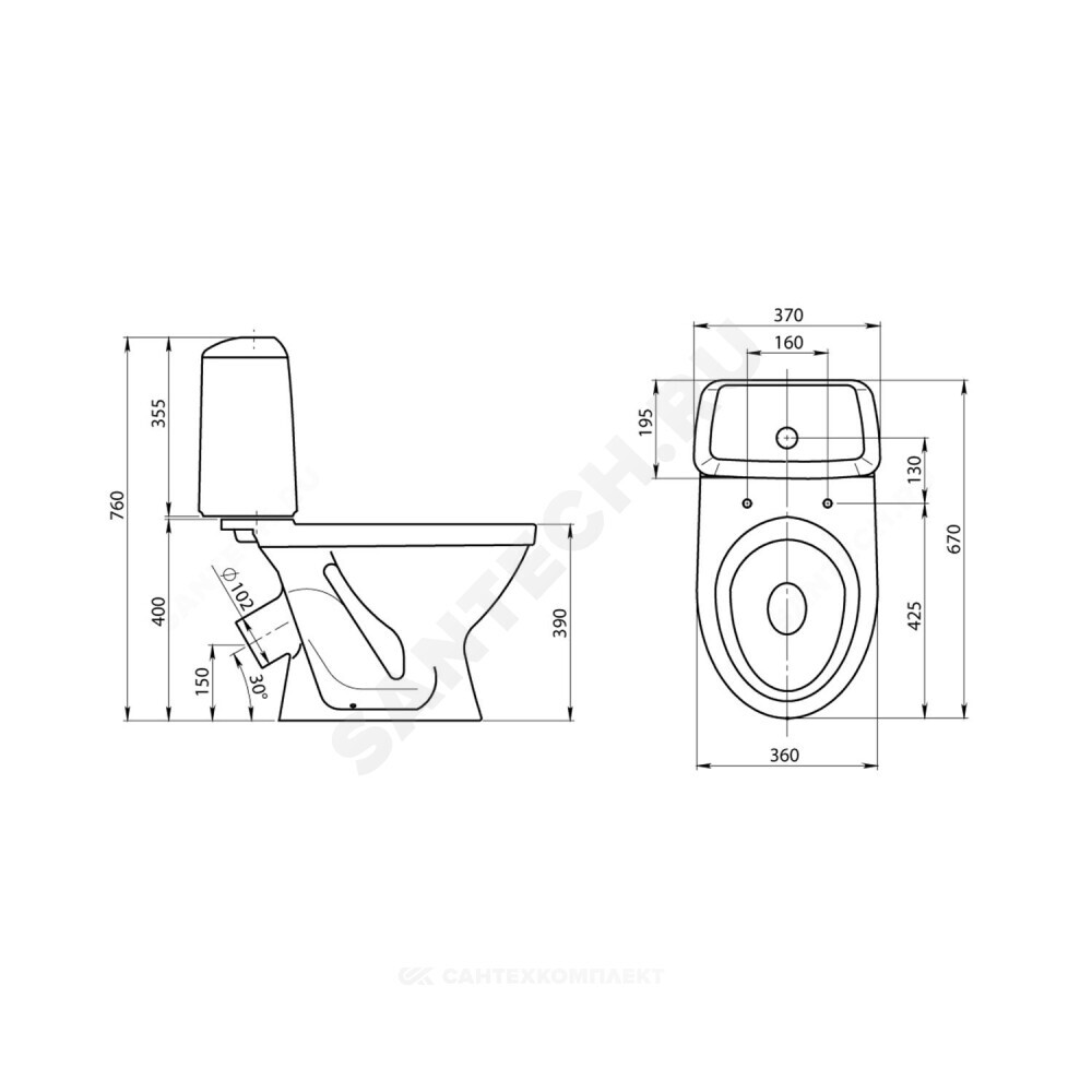 Унитаз-компакт (чаша, бачок, арматура, комплект креплений ), сиденье полипропилен