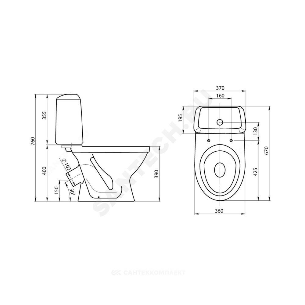 Унитаз-компакт (чаша, бачок, арматура, комплект креплений ), сиденье полипропилен