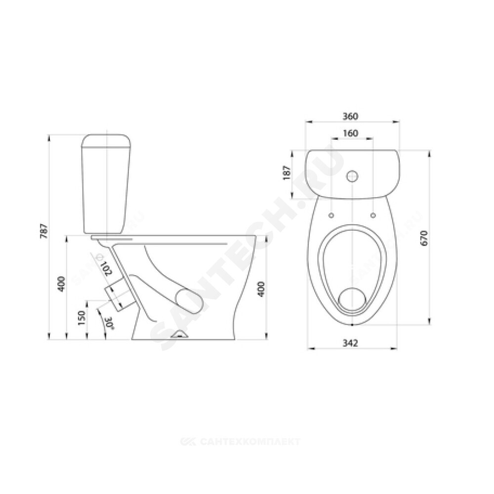 Унитаз-компакт (чаша, бачок, арматура, комплект креплений ), сиденье полипропилен