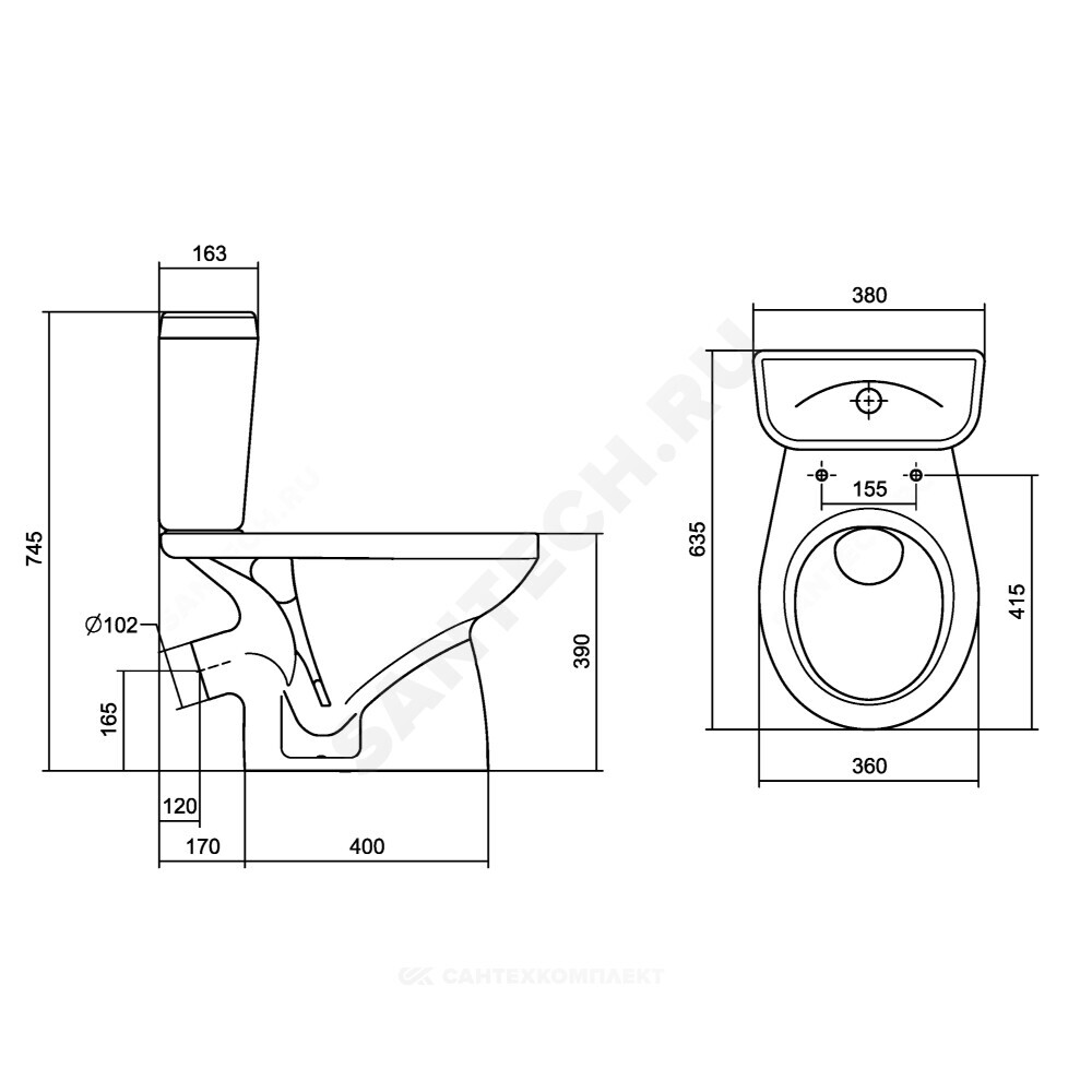 Унитаз-компакт (чаша, бачок, арматура, комплект креплений ), сиденье дюропласт с микролифтом