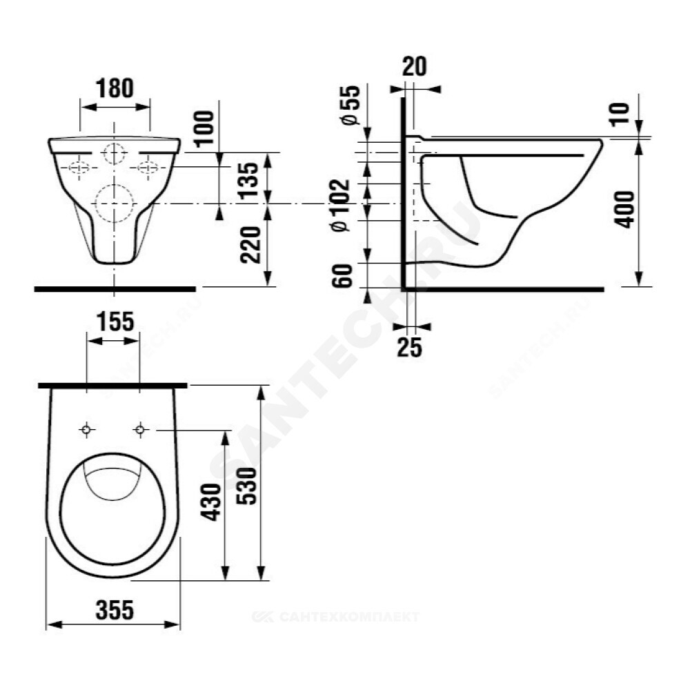 Унитаз подвесной. Сиденье в комплект поставки не входит.