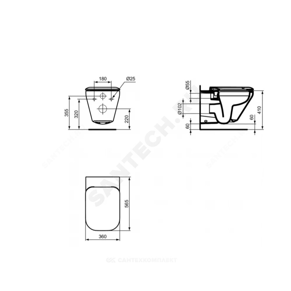 TONIC II Rimless Безободковый подвесной унитаз, глубокий смыв, с крепежом TT0299327 (для полностью скрытого монтажа), с Сиденьем и крышкой с функцией плавного закрытия K7065, дюропласт