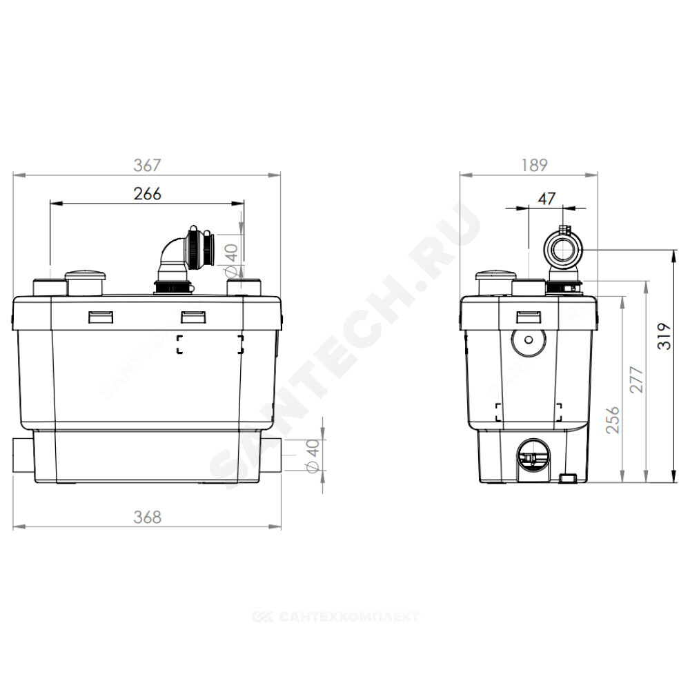 Предназначен для перекачивания бытовых серых стоков от посудомоечной и стиральной машин, ванны, душа, кухонной мойки, раковины, биде.