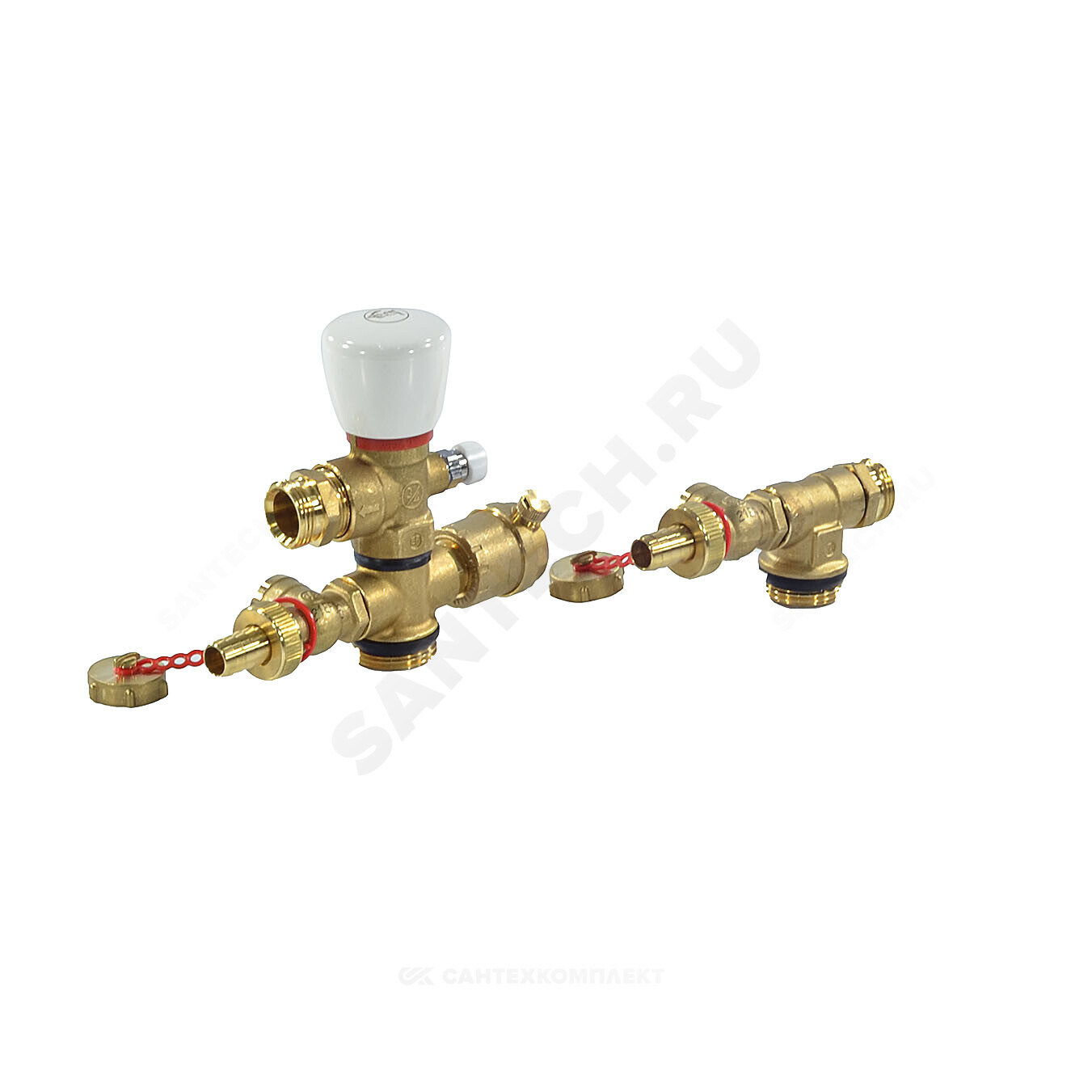 Насосно-смесительный узел для систем напольного отопления, компактного исполнения, со смесительным трехходовым термостатическим клапаном. Без циркуляционного насоса. С возможностью установки комплекта байпасса.