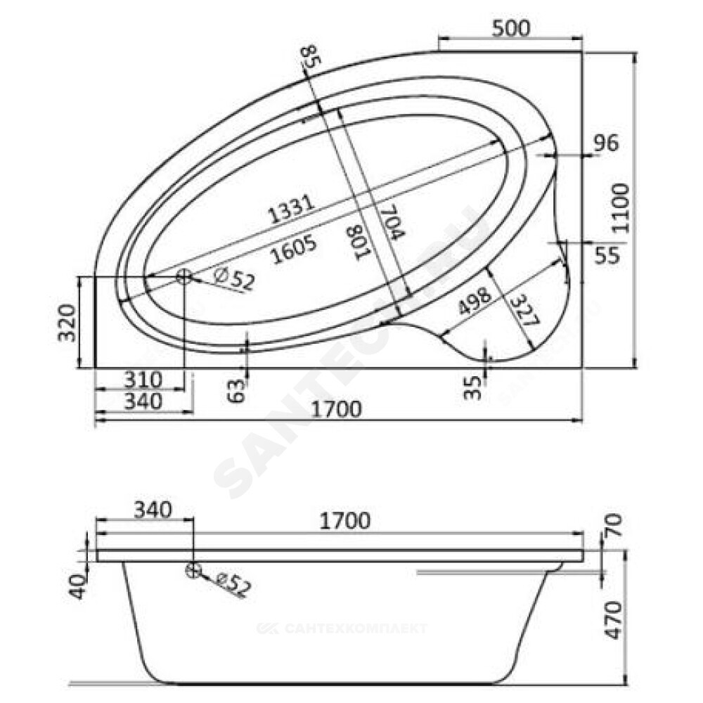 Ванна.Монтажный комплект и панель приобретаются отдельно