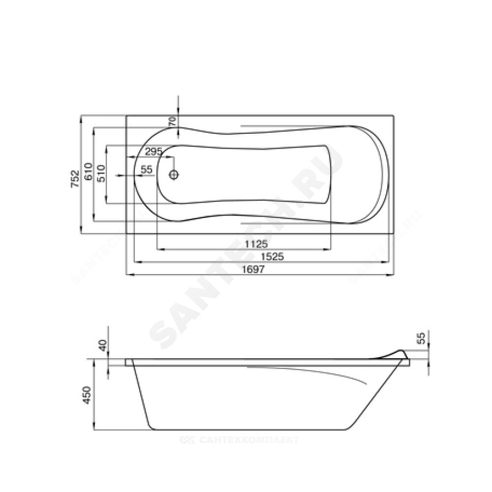 Ванна.Монтажный комплект и панель приобретаются отдельно
