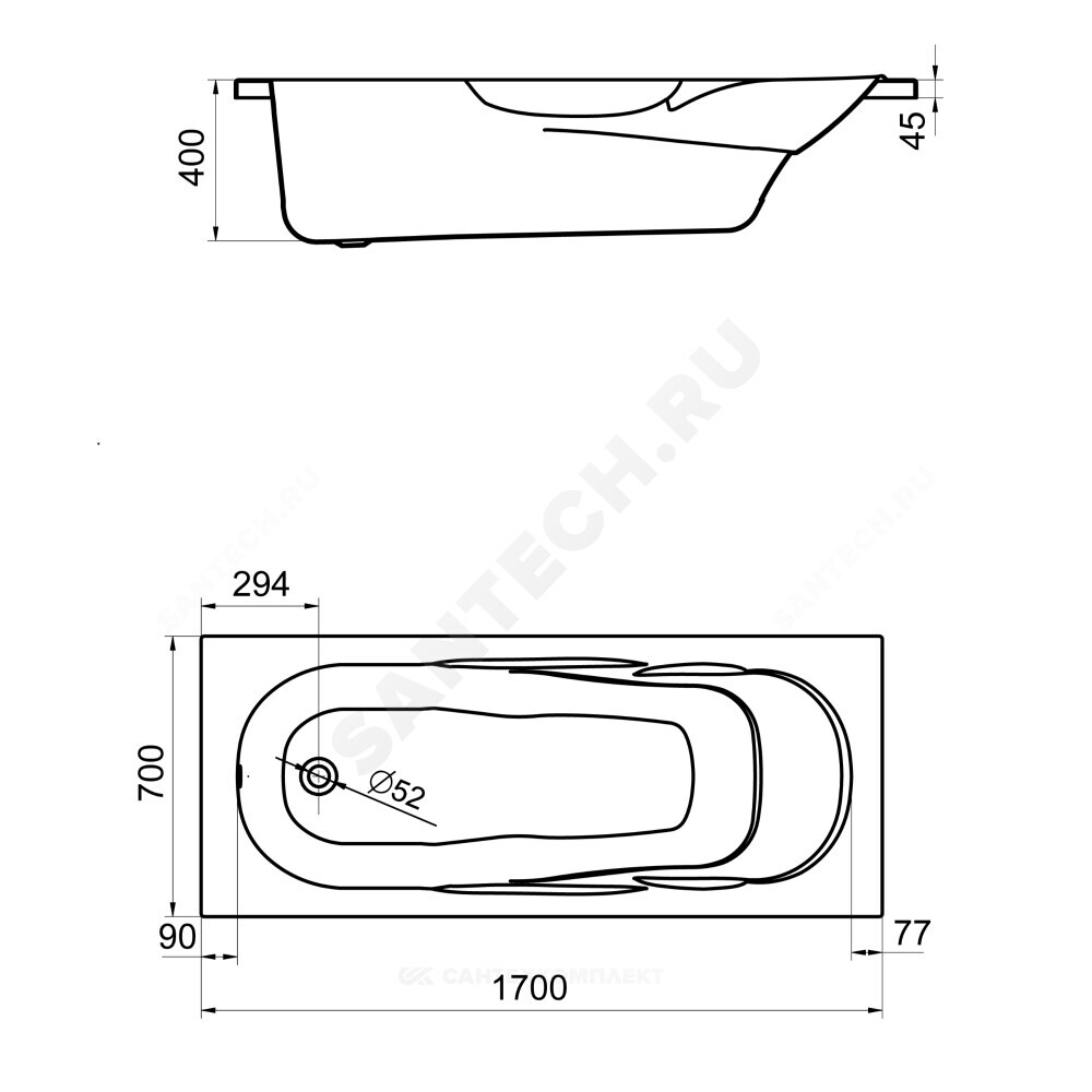 Ванна.Монтажный комплект и панель приобретаются отдельно
