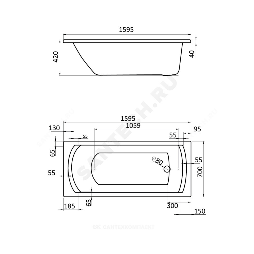 Ванна. Монтажный комплект и панель приобретаются отдельно