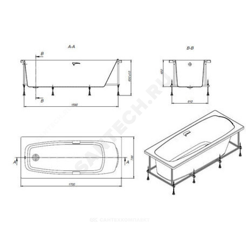 Акриловая ванна прямоугольная, глубина 45 см. Монтажный комплект заказывается отдельно. Монтажный комплект (хромированные ручки, каркас, комплект креплений к стене, система слив-перелив полуавтомат)