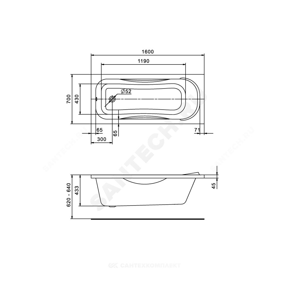 Ванна.Монтажный комплект и панель приобретаются отдельно