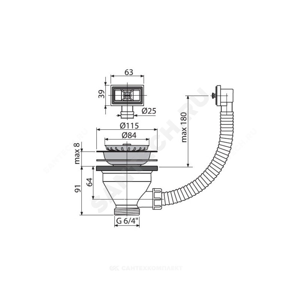 Корпус слива с переливом Пробка из нержавеющей стали Сливная решетка из нержавеющей стали